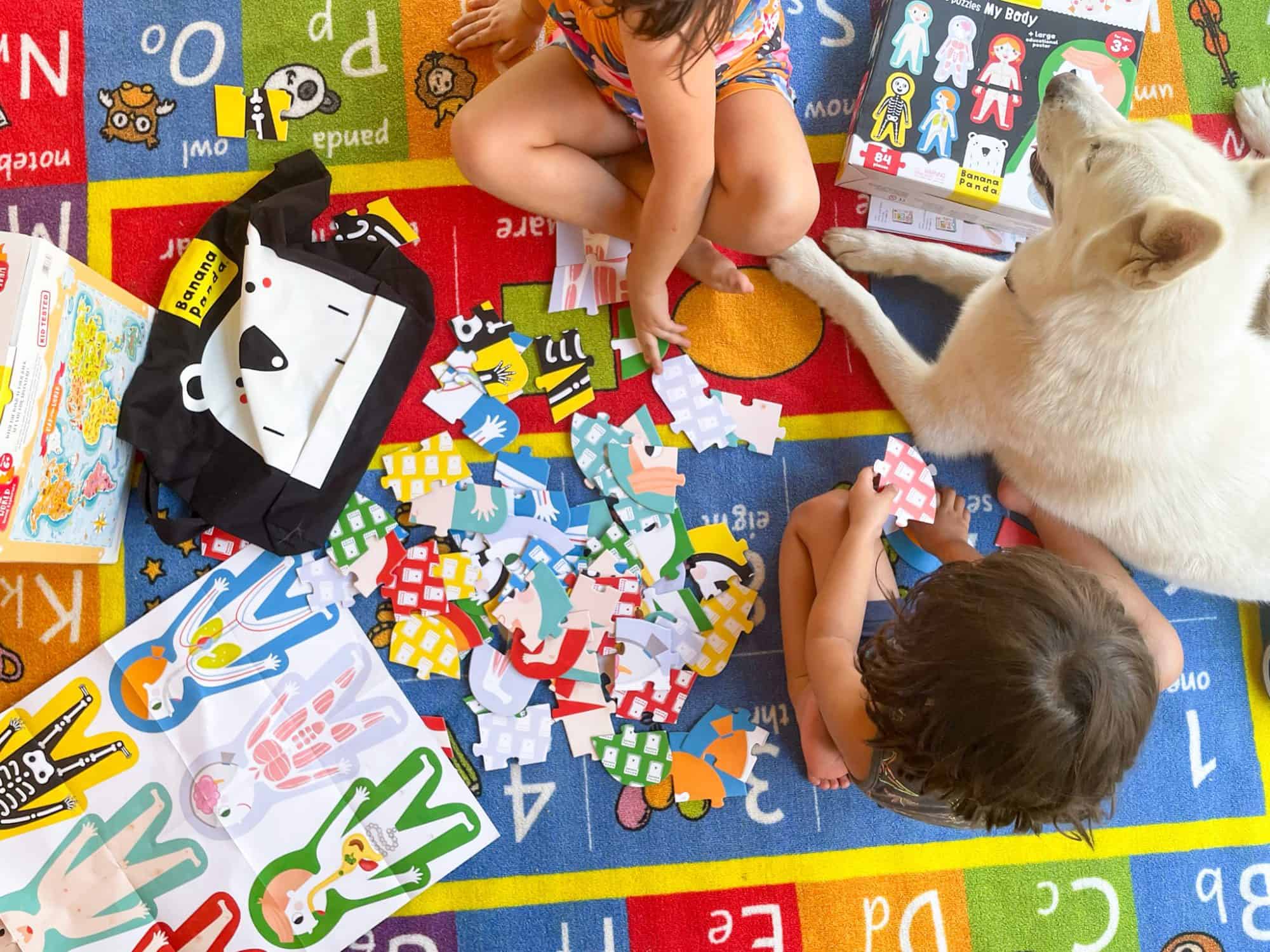 My kids loved the Banana Panda Suuuper Size Puzzles My Body. This 84 piece puzzle has large pieces, easy enough for both my 3 and 6 year old to grasp and put together. It was color coded which made it even easier and fun.