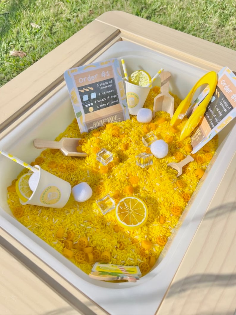You can change up the toys for themed experiences or sensory play and add fun things like colored rice, sand, or orbees.