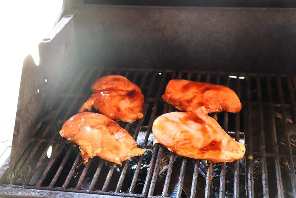 - Grill the chicken about 8 minutes, alternating sides every 2 minutes.