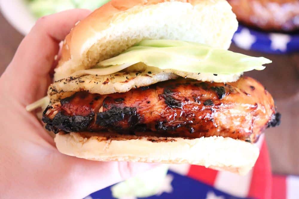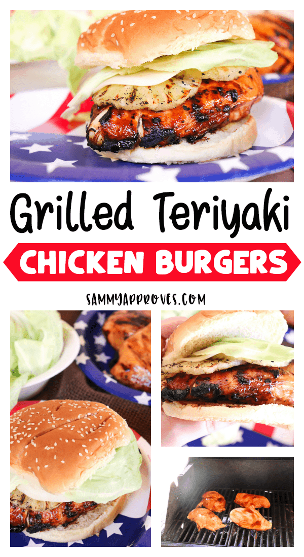 [wpurp-searchable-recipe]Family Cookout Fourth of July Grilling Ideas | Teriyaki Chicken Burgers – – Ball Park Burger Buns, Tyson Boneless Skinless Chicken Breasts, Bottle Teriyaki Marinade, head of lettuce, sliced provolone cheese, can sliced pineapple rings, , Tenderize your chicken on a cutting board with a meat tenderizer or rolling pin; Marinade your chicken for 1 to 2 hours before grilling using your favorite bottle of teriyaki marinade (I like to pour the marinade in a large plastic baggie with the chicken, then stick it in the fridge); Grill the chicken about 8 minutes, alternating sides every 2 minutes.; Grill the pineapple slices for about 2 minutes per side; Build your burgers with mayo, lettuce, provolone cheese, pineapple rings, and chicken; If you don’t want a real thick burger cut the cooked chicken breasts in half; ; – – Food – Family Dinners[/wpurp-searchable-recipe]
