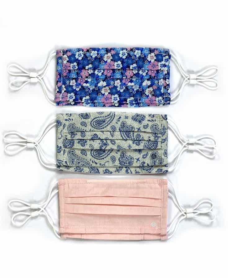 This bundle of 3 reusable masks (for minis or adults) is made from 100% cotton fabric, are machine washable and latex-free.